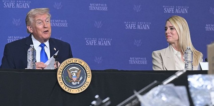 (L/R) US President Donald Trump speaks as Attorney General Pam Bondi looks on during the Memphis Safe Task Force roundtable in Memphis, Tennessee on March 23, 2026. (Photo by SAUL LOEB / AFP via Getty Images)